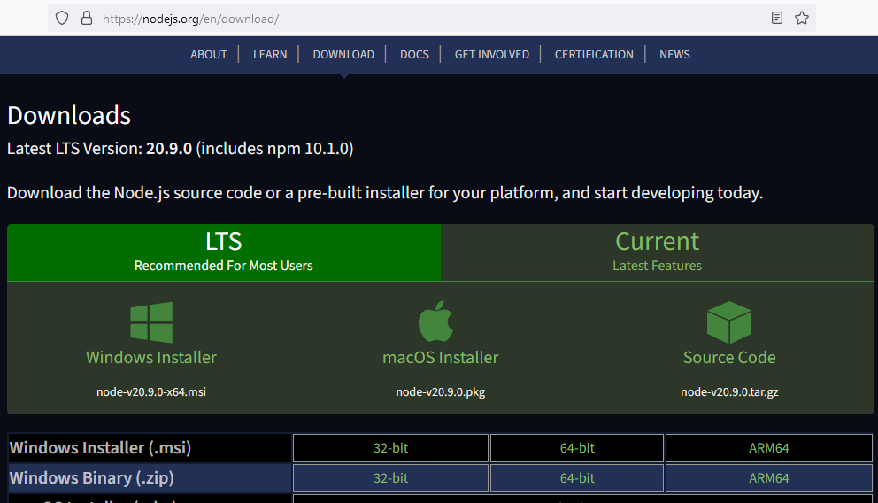 Download Nodejs tại trang web : https://nodejs.org/en/download